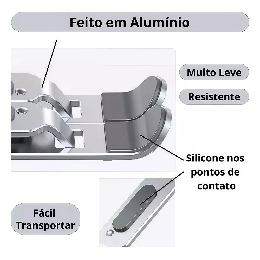 • Estabilidade e Segurança: Seu design inteligente conta com silicone nos pontos de apoio, garantindo que seu notebook permaneça estável em qualquer superfície, evitando deslizes e possíveis acidentes.